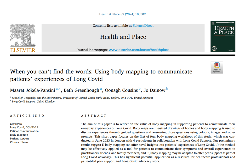 By applying participatory and arts-based methods (body mapping) and interviews with people living with Long Covid in the UK, this project aims